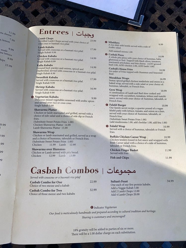 From happy hour specials to an inviting outdoor setting complete with heated kiosks, Casbah Cafe is undeniably a culinary gem that promises delicious flavors and a warm atmosphere.